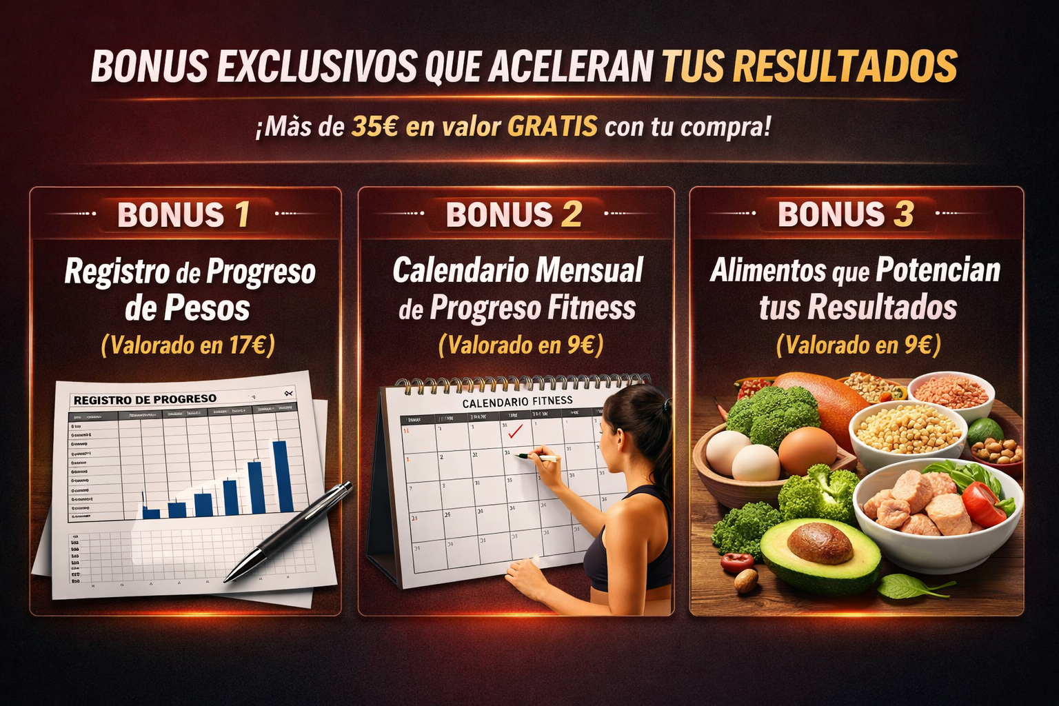 🎁 Y además recibirás GRATIS 3 BONUS VALORADOS EN 35€